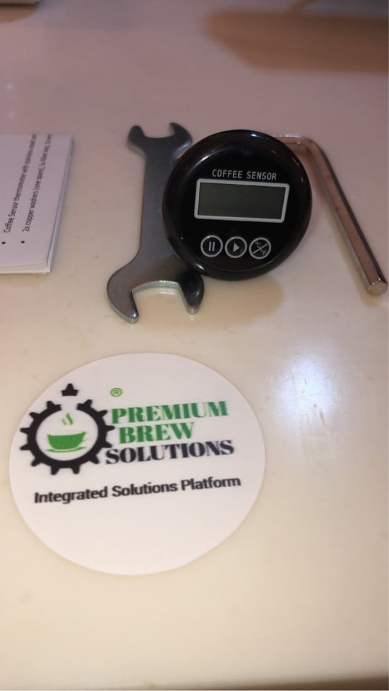 مقياس حرارة ديجيتال (رقمي) دقيق جدًا من شركة كوفي سينسر، من اهم قطع منظمات الحرارة والضغط مصمم بمقاس سنة M6، ويعمل على قياس درجة حرارة الماء في قروب القهوة أثناء عملية الثيرمو سايفون. يتميز بنسبة خطأ تصل إلى ±0.2 درجة مئوية، مما يضمن أداءً فعالًا في تحديد درجة الحرارة التي ستصب على بك الإسبريسو.